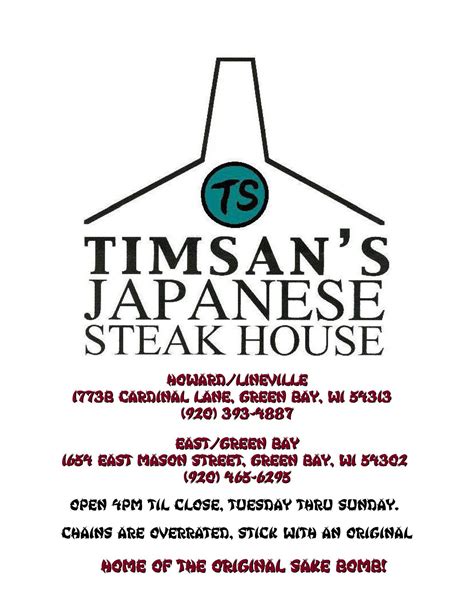 We have won numerous awards for. 17738 cardinal ln green bay, wi 54301 (map & directions) phone: Timsan's japanese steak house serves california and shitake rolls,.